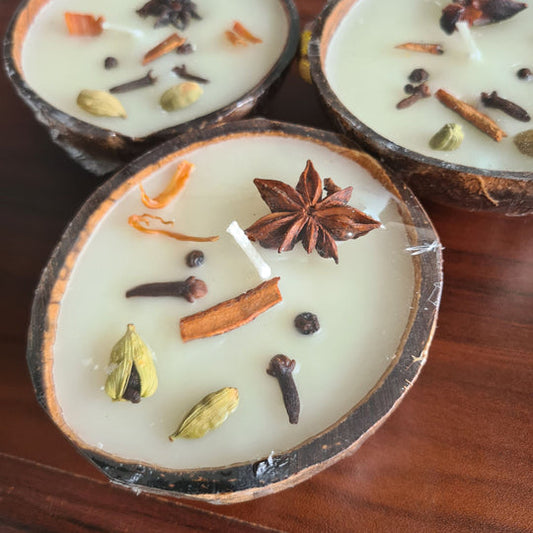 Coconut Shell Spice Candle/Diya (Set of 2)